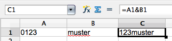 In Excel bzw. Calc kann man Felder miteinander „verketten“ und in einer anderen Zelle ausgeben lassen. Problematisch wird es, wenn eines der Felder vom Format „Zahl“ ist. Hierbei werden im zusammengesetzten Wert führende Nullen nicht ausgegeben. Um das zu erreichen, bedient man sich der Textfunktion:
